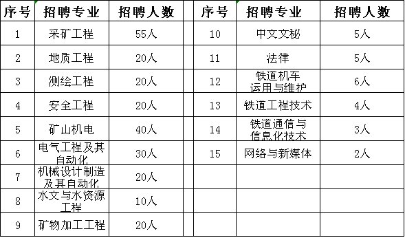 (3)2021-2025年全日制统招专科学历,矿山机电专业,从事直管矿井及地面生产经营单位机电岗位,招录40人;